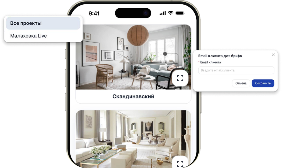 Помогает декораторам фиксировать этапы, материалы и согласовывать изменения.