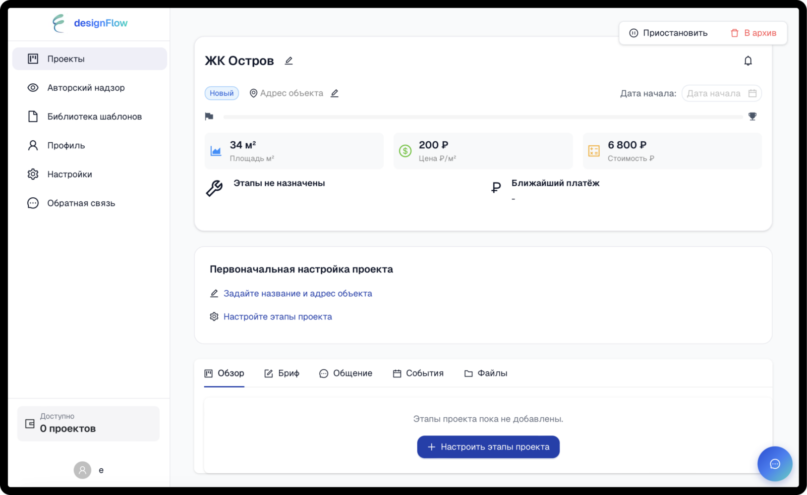 Тариф «Авторский надзор» привязан к проекту. Начните вести один проект бесплатно.